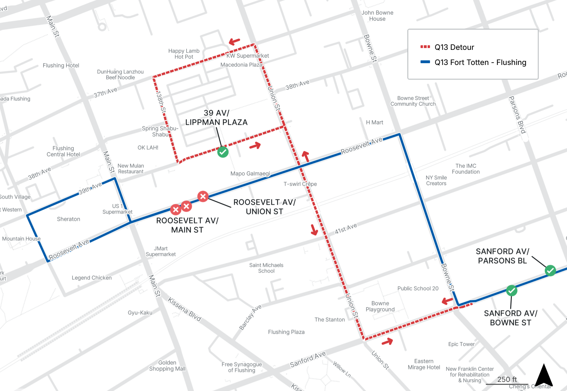 While detoured, southbound ‌‌Q39 buses will make stops as requested on Thomson Ave.